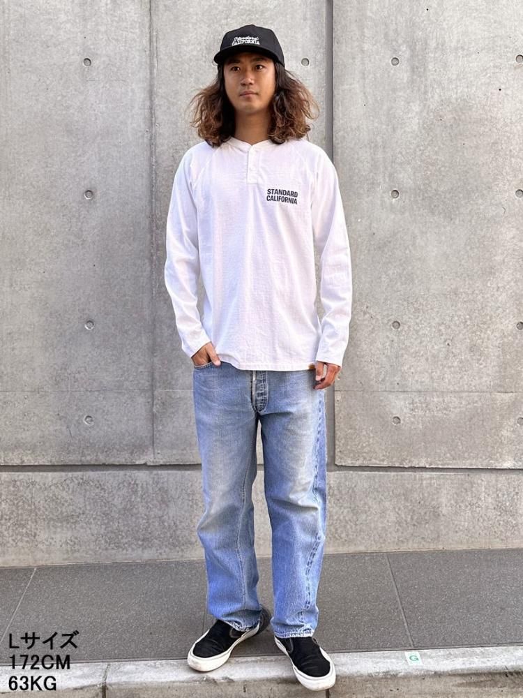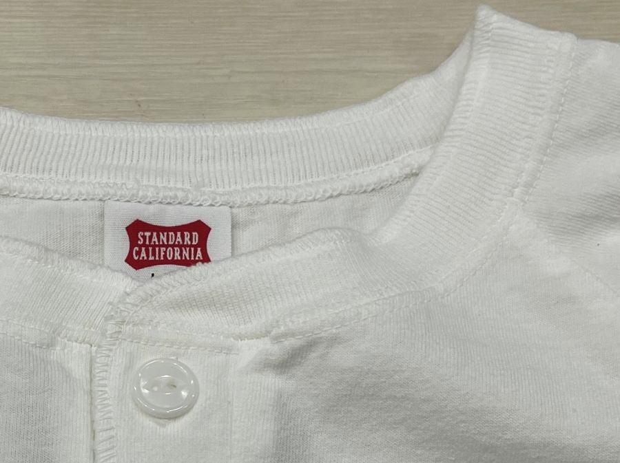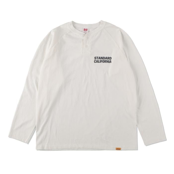 スタンダードカリフォルニア ホワイト ヘンリーベースボール ロングスリーブ Tシャツ Standard California US Cotton Logo Henley Baseball LS-T