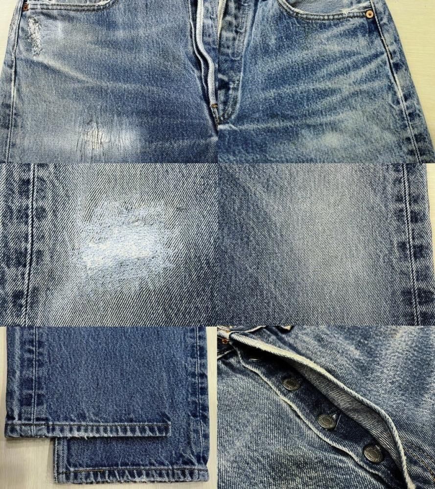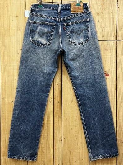 穿き込まれた迫力ある良い色落ちでアタリなどいい感じです。リペアもアクセントになっています。ここまでの雰囲気のある501はレアでなかなか出てこない物になります