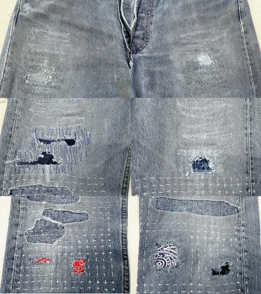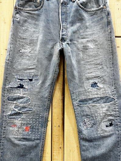 ★コメント;穿き込まれた501に刺し子や色々なリペア加工が施されていていい雰囲気になっています