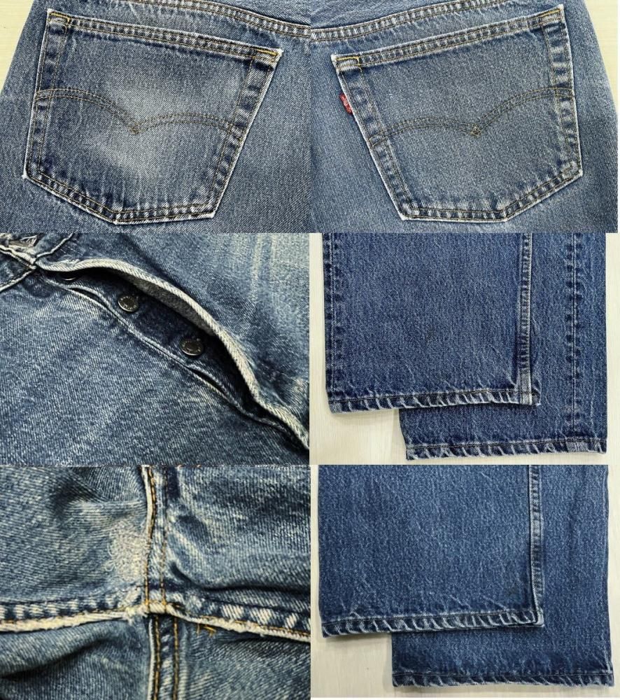 90年の501です。ハチマルと同じのデニムです。激ヒゲの良い色落ちでアタリなどいい感じです。生地はしっかりしています。