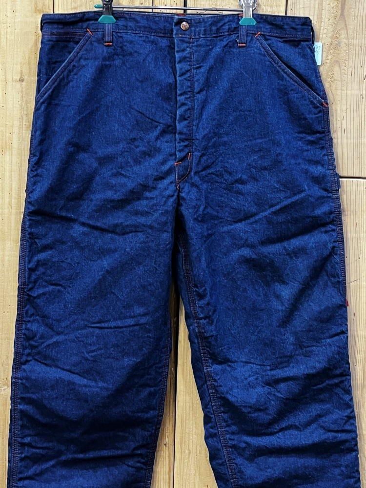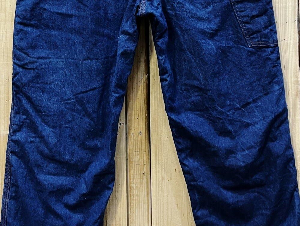 極上ワンウォッシュ珍しいライナー付きのペインターパンツです。オレンジステッチといい感じのデニムでいい雰囲気になっています。冬重宝します。