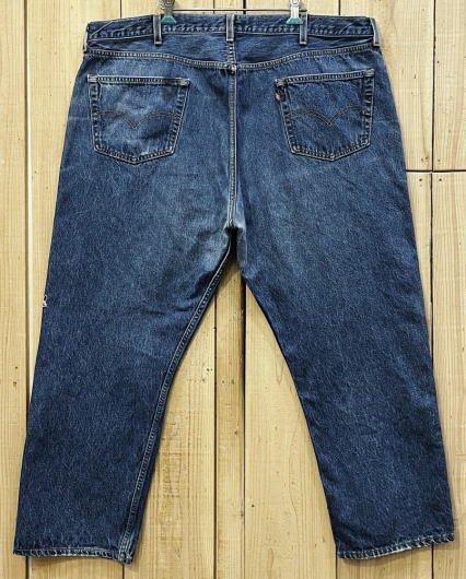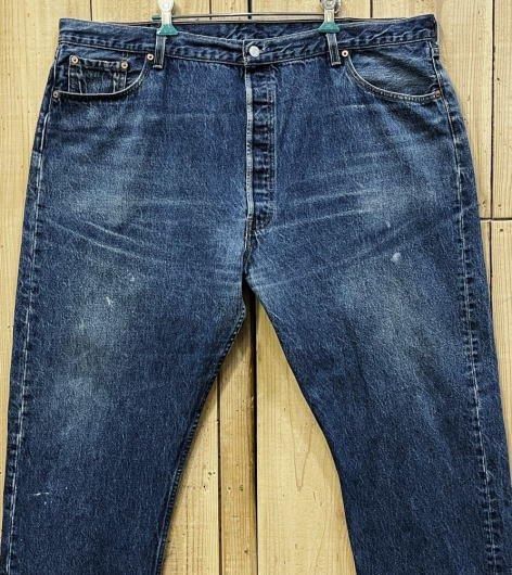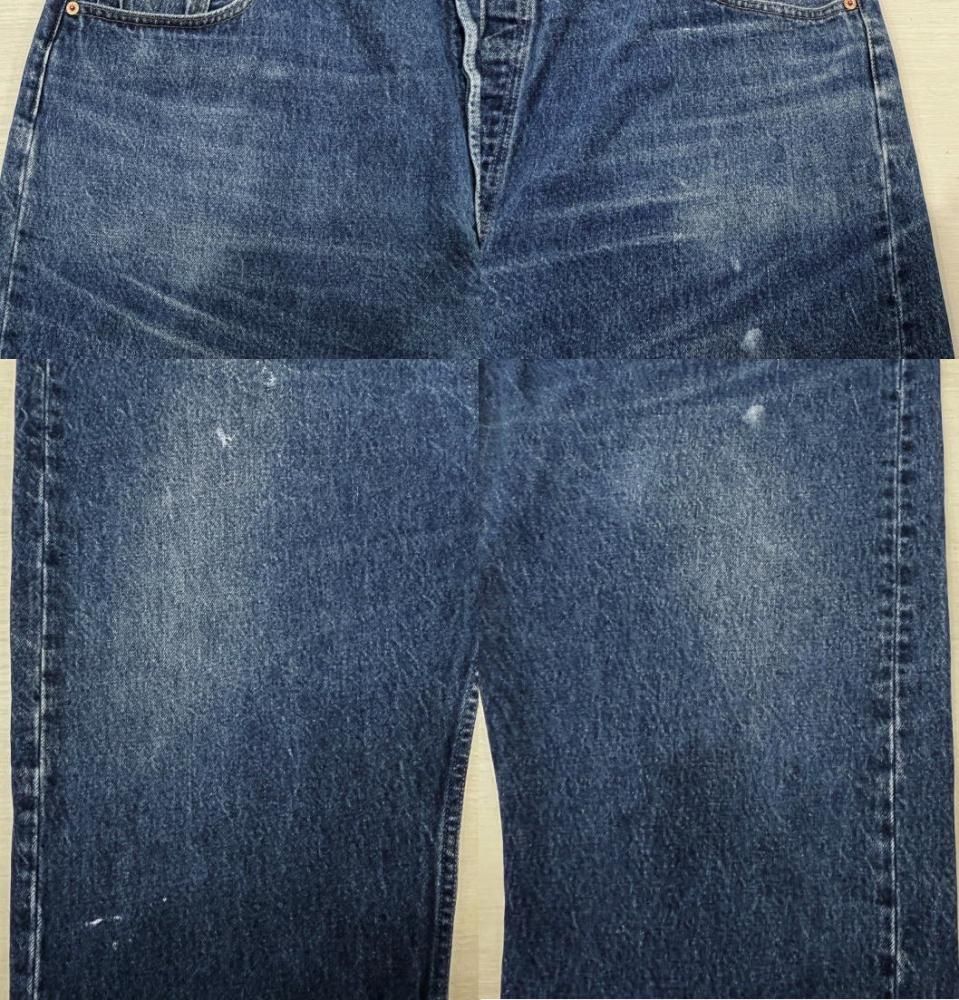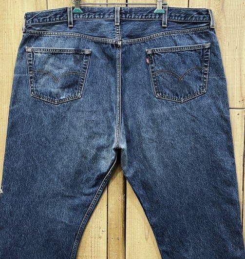 ★コメント;穿き込まれた迫力あるワイルドな色落ちでや激ヒゲやカスタムリペアなどいい感じです。ここまでの雰囲気のある501はレアでなかなか出てこない物になります。