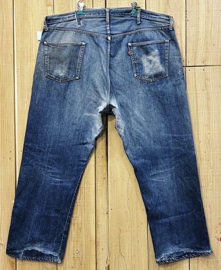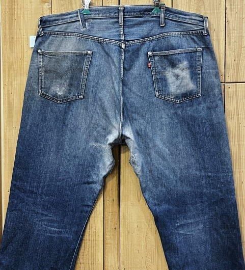 穿き込まれた迫力ある色落ちで激ヒゲ、クモノスなどいい感じです。リペアもしっかりされています。ヴィンテージはやはりいいですね