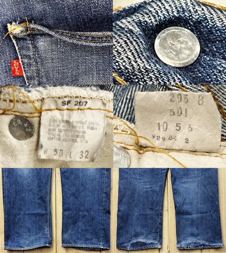 ■詳細;赤耳、ヒップポケットシングルステッチ、ボタン裏;6刻印、赤タグ、ボタンフライ、75年表記、裾チェーンステッチ MADE IN USA