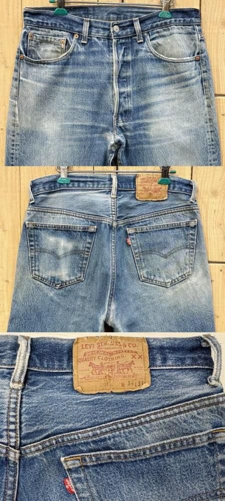 超激ヒゲ 酸化デニム リーバイス501 古着 ハチマル 80S スタンプパッチ LEVIS501 MADE IN USA W40×L30 大きいサイズ 米国製
