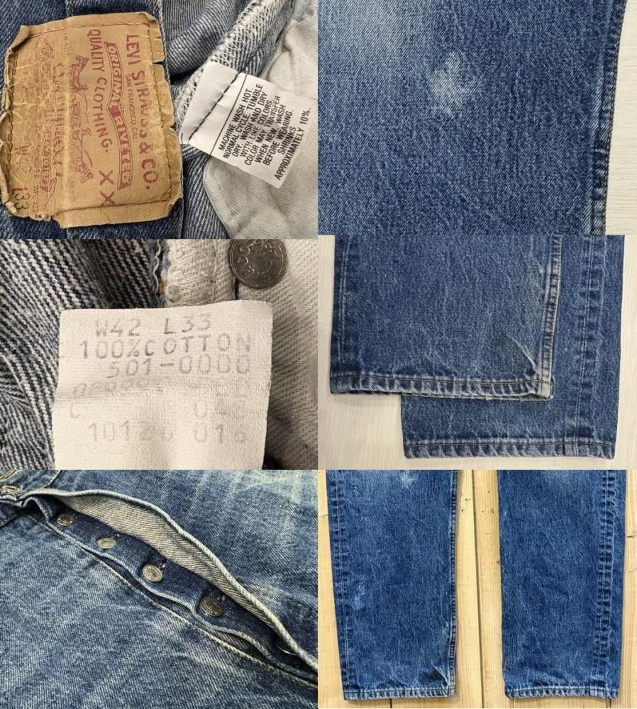 激ヒゲの501。しかも酸化したデニムになっています。(しかも酸化したデニムになっています。(酸化デニムとはビンテージデニムでよく見られインディゴに深みが増し味わいある色に変化すた色のこと。)ここまでの雰囲気のある501はレアでなかなか出てこない物になります。生地はしっかりしています