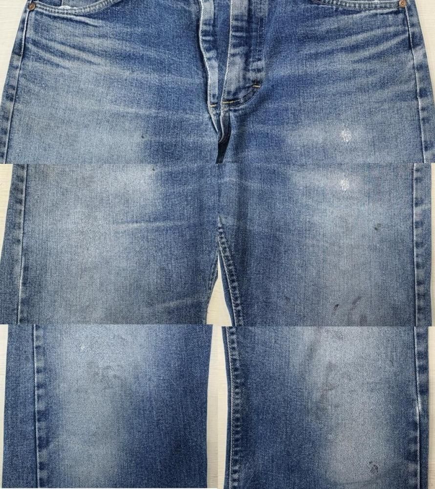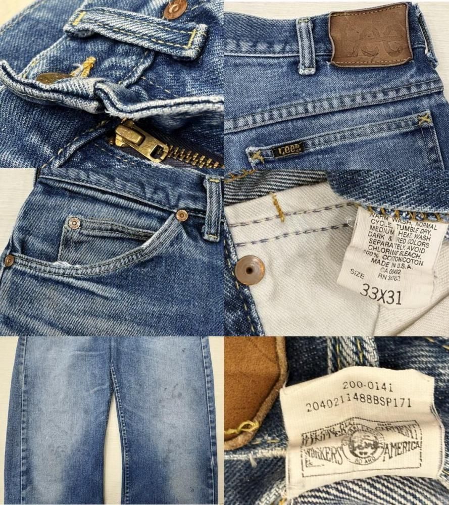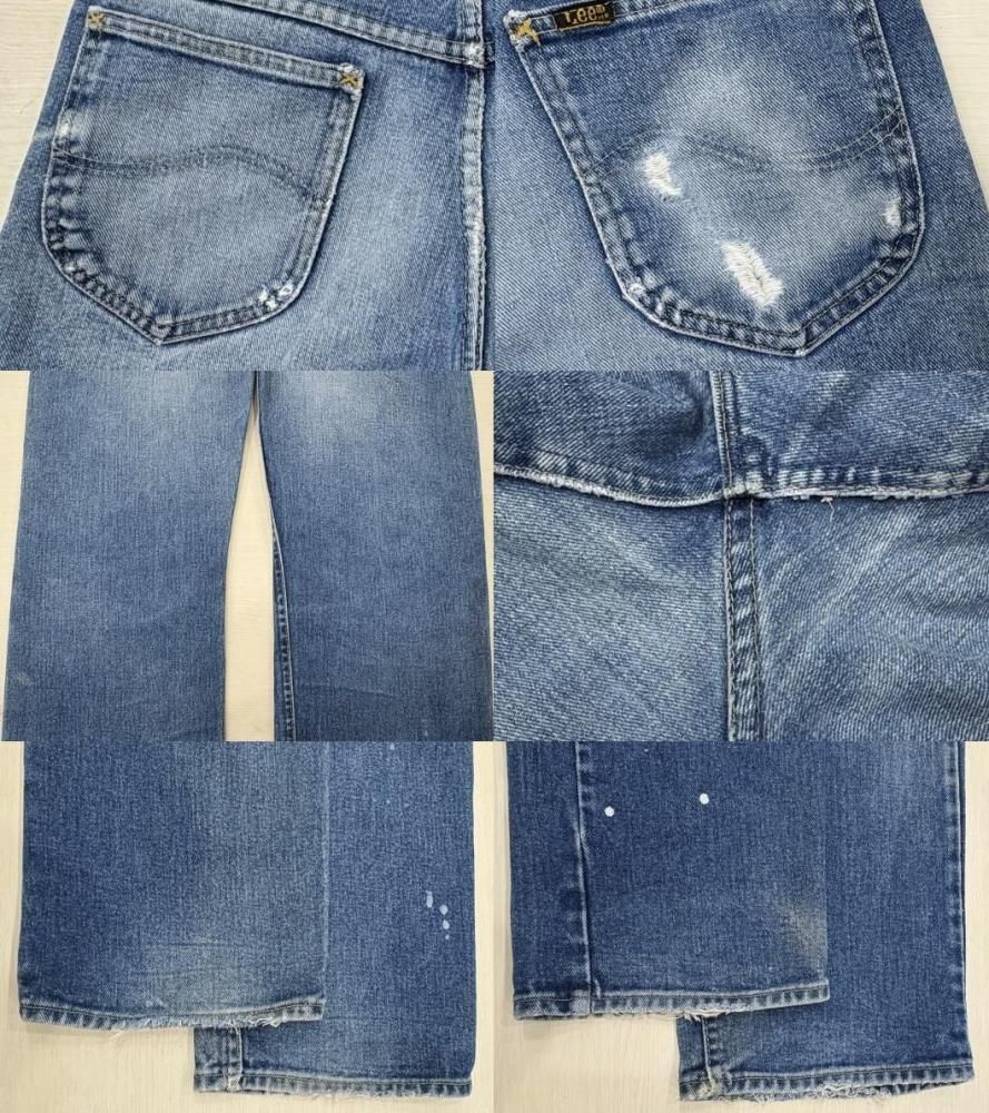 穿き込まれた迫力ある色落ちで激ヒゲなどいい感じです。リペアやシミが多々ありますがここまでの雰囲気のあるLEEはレアでなかなか出てこない物になります。