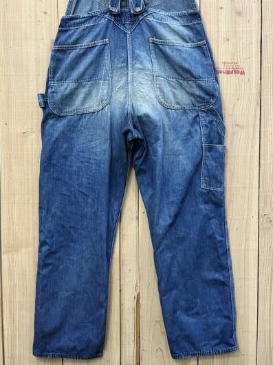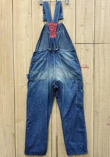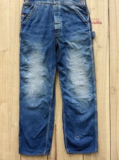 レアなブランドビックダッドの50Sローバックスタイルのオーバーオールです。穿きこまれたいい色に落ちて雰囲気抜群です。腿に補強のリペアが入っています