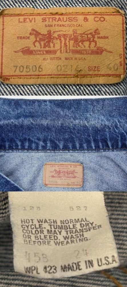 美品 リーバイス70506 古着 Gジャン LEVIS ジージャン 80S 40 MADE IN USA 米国製 通販