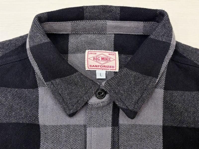 BIG MIKE ビッグマイク ヘビーフランネルシャツ ブラック×グレイ HEAVY FLANNEL SHIRTS ブロックチェックシャツ