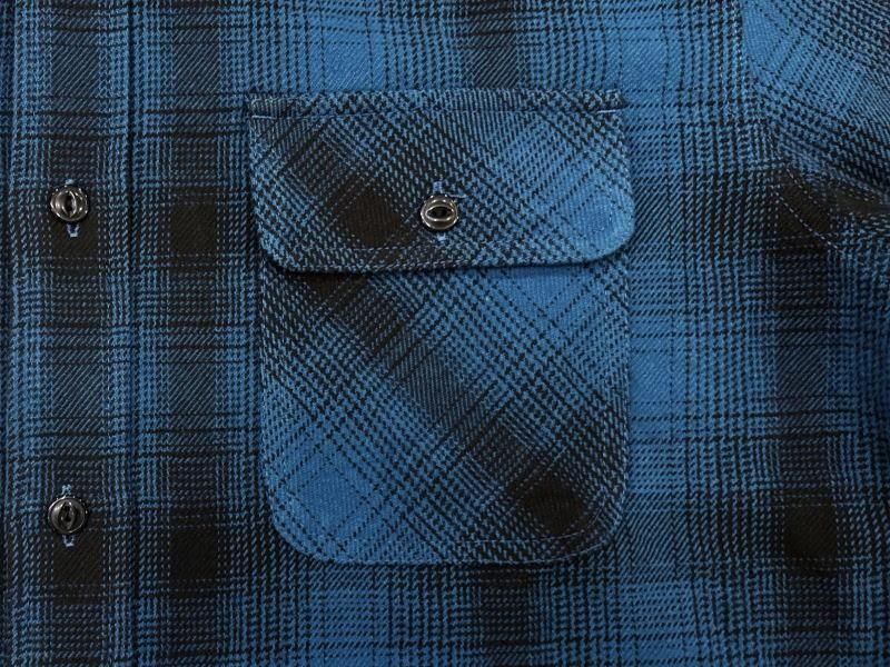 当時の雰囲気を感じさせる。猫目ボタン、2本針巻き縫い、フラップ付き胸ポケットなどビンテージワークシャツのディテールを忠実に再現し現代シルエットにフィットさせました。