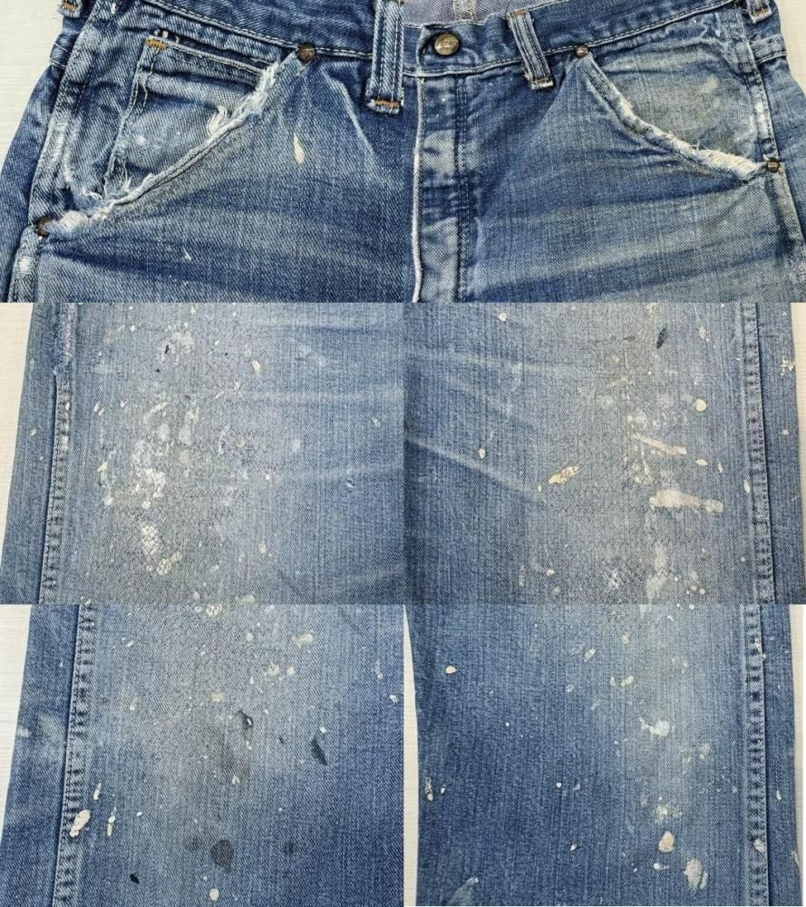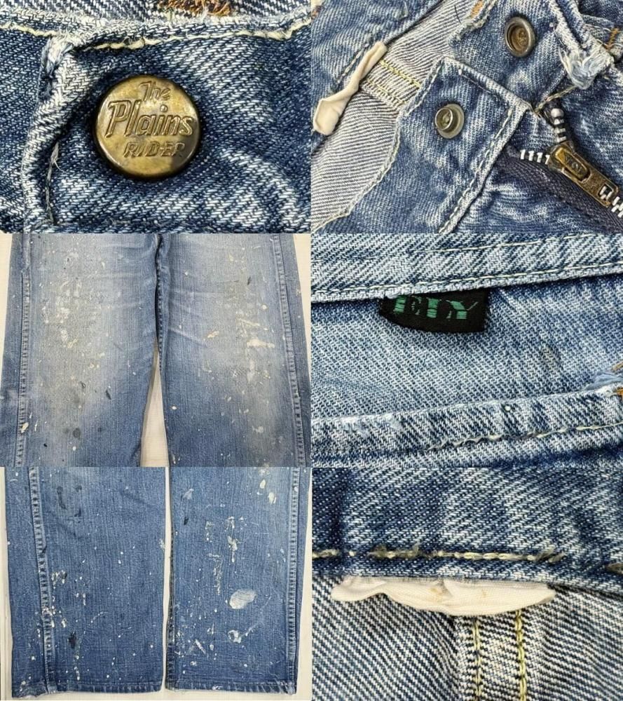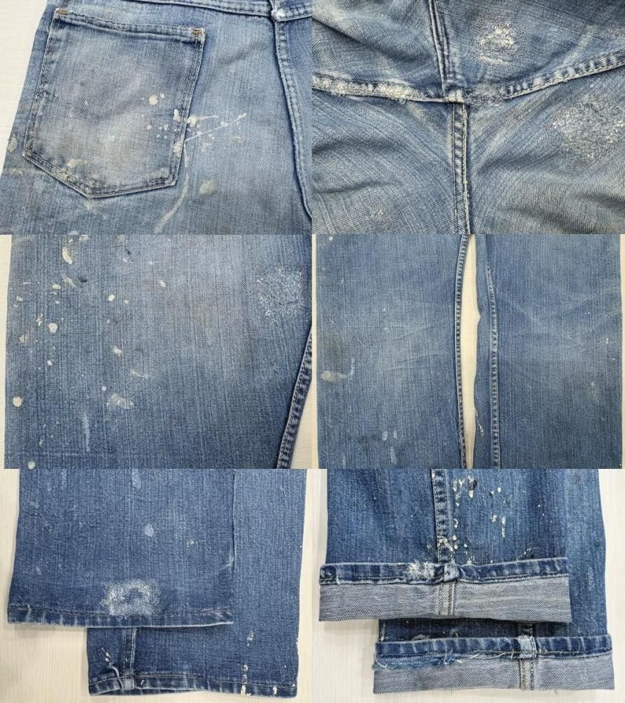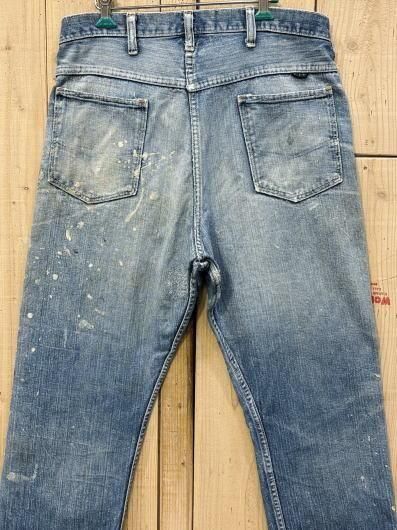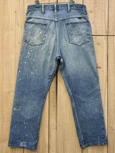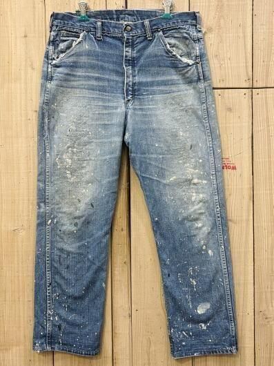 珍しいレアブランドの60年代KEYのビンテージデニムパンツです。ペンキシミやリペアが多々ありますがイエローステッチとタテ落ちデニムでいい雰囲気です。