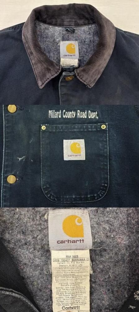 Carhartt カーハート ブラック カバーオールジャケット ライナー ダック L 古着 COVERALL JACKET MADE IN MEXICO