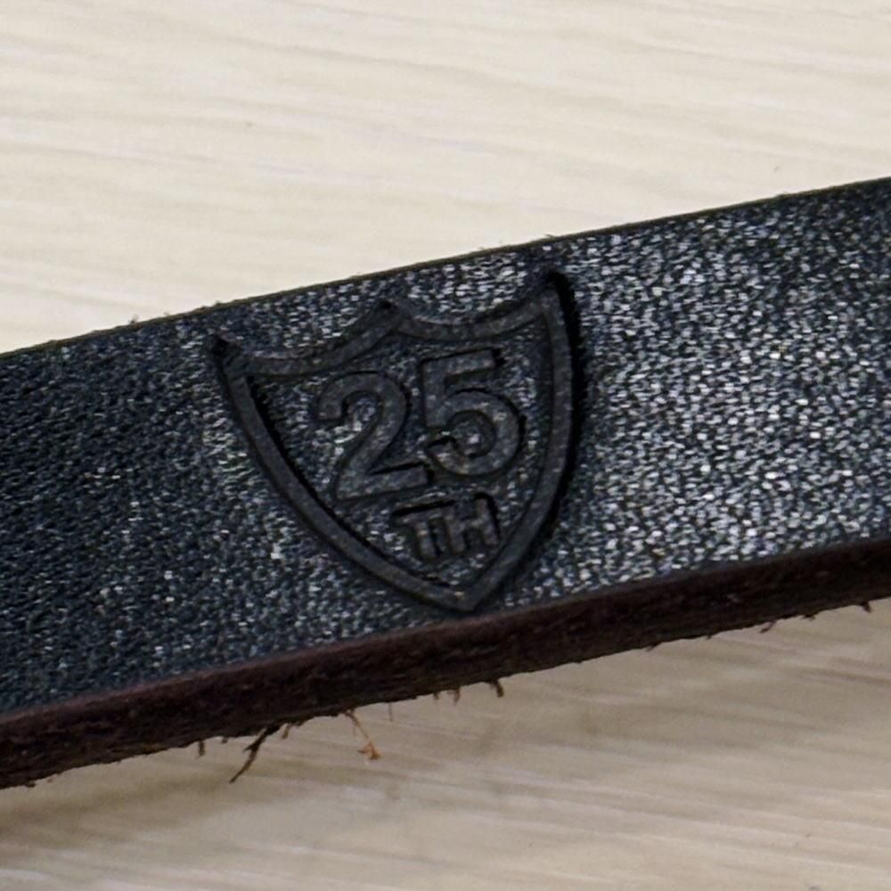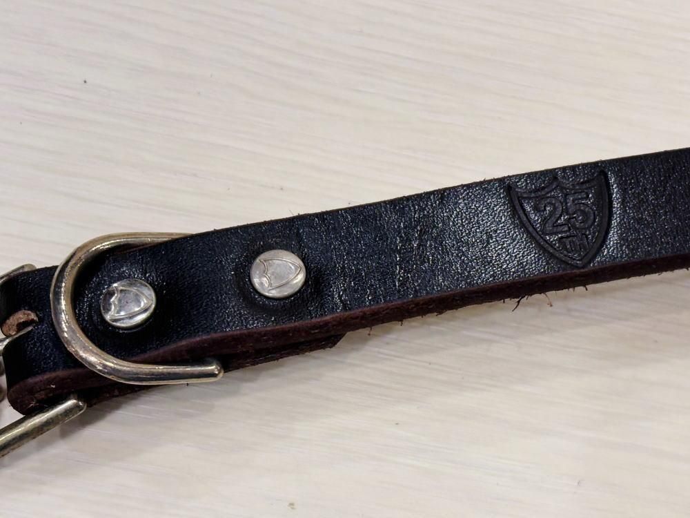ベルト幅は0.75inch(約1.9cm)、バックル横には25周年記念の刻印を施しています。
