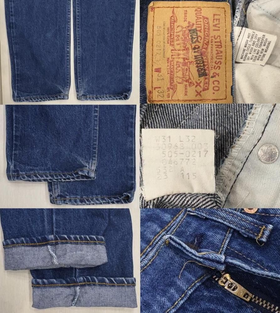 美品 リーバイス505 古着 激ヒゲ LEVIS505 ハチマル 裾チェーンステッチ 赤タブ W30×L31 80S MADE IN USA CAREスタンプ ビンテージ ジーンズ