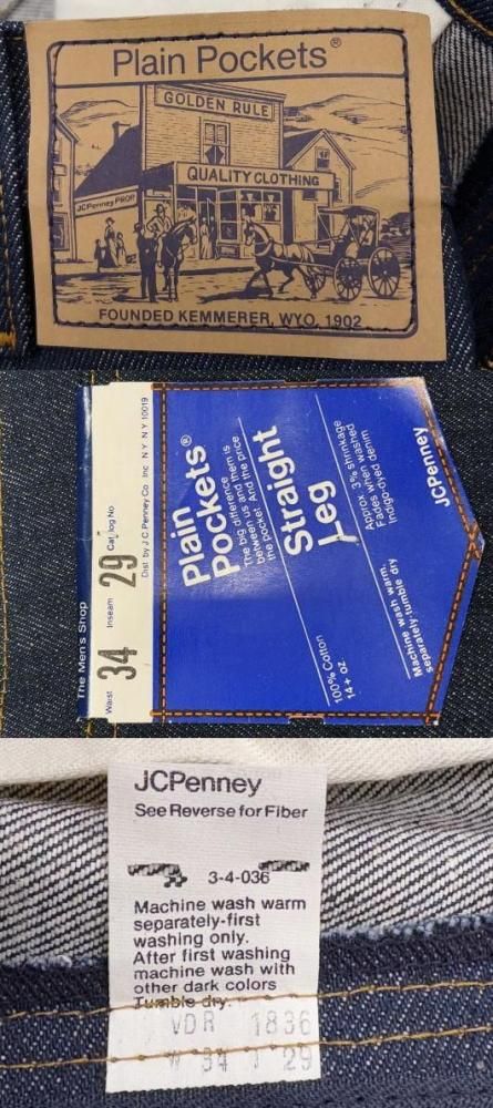 デッドストック 極上品 未使用 JCペニーJ.C.PENNY PLAIN POCKETS STRAIGHT LEG JEANS 80S ストレートジーンズ W34×L29