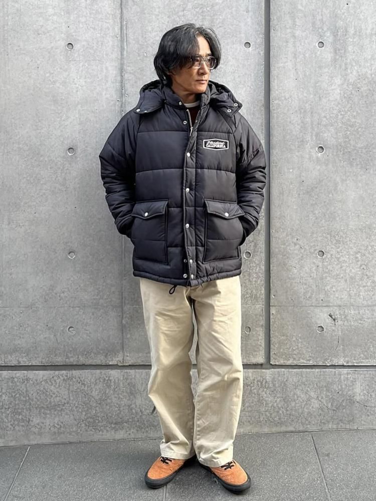 ヴィンテージのような生地感ながら、暖かさと軽さが特徴のサーモライトの中綿が250g入っているので、保温性にも優れており着心地も抜群。
