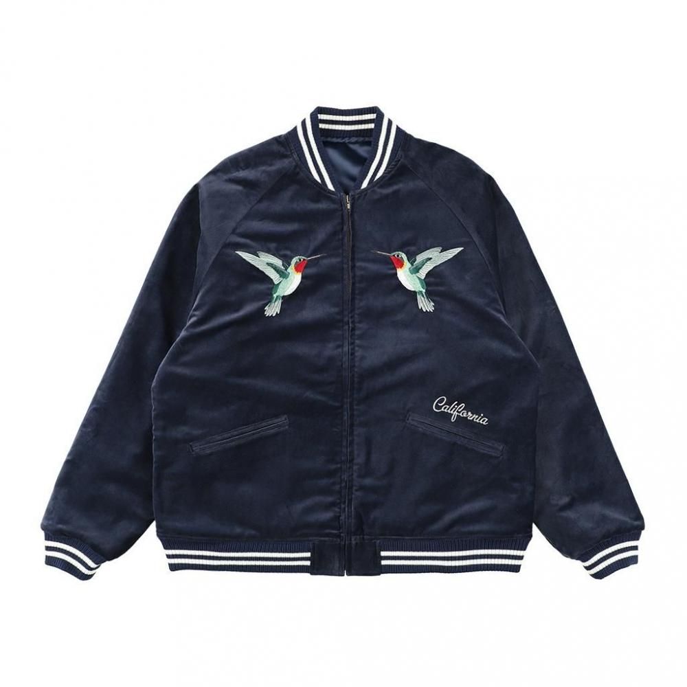 別珍面はフロントにハミングバード、バックにはKomyデザインのカリフォルニアをイメージしたスーベニア刺繍を施しました。ネイビー、はボディに合ったカラフルなカラーリングの刺繍、ブラックはシックな印象のモノトーン刺繍で仕上ています。